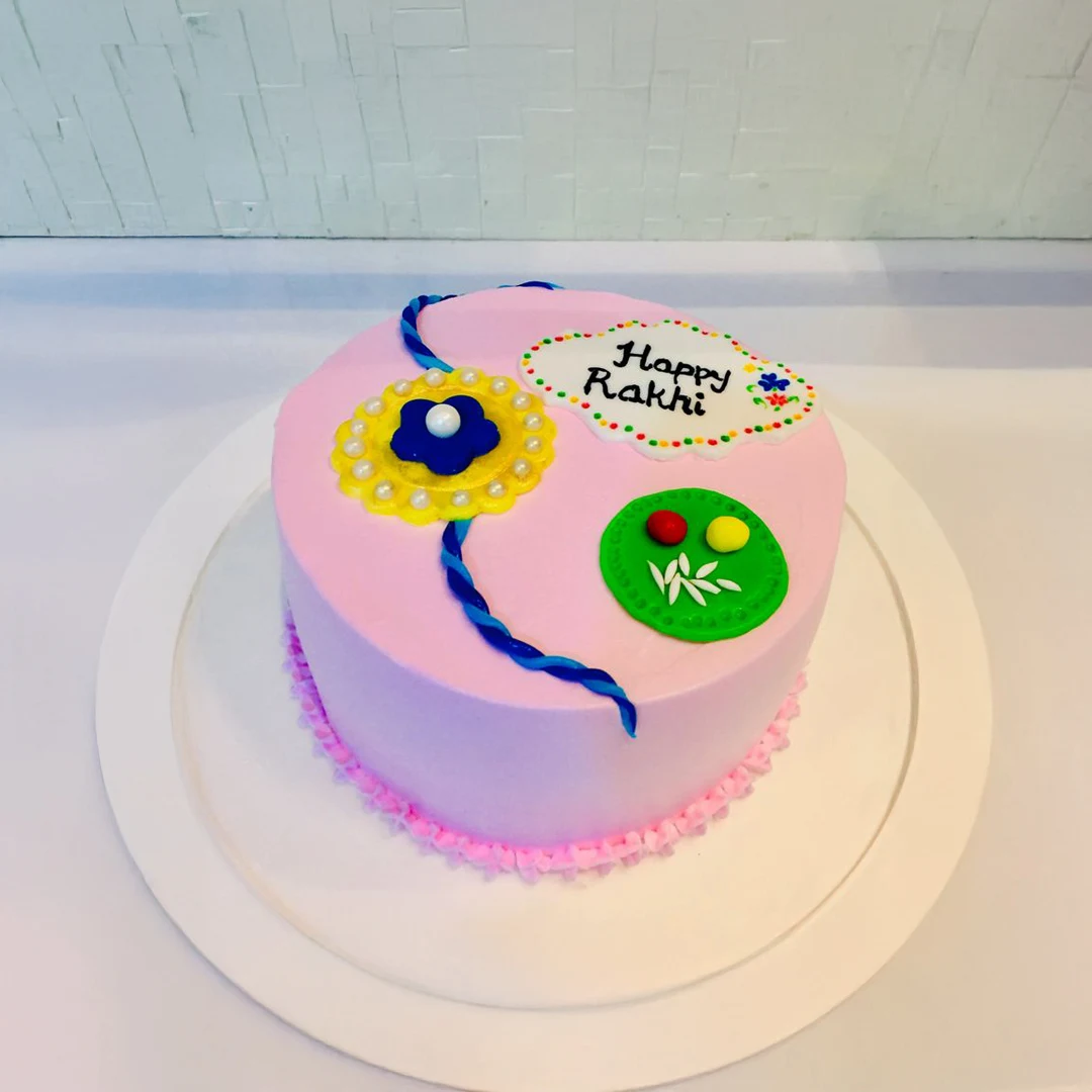 Presenting our Rakhi Celebration Cake, a joyful one-tier eggless cream cake decorated with vibrant festive elements and a handcrafted edible Rakhi on top. Its playful colours and clean finish make it perfect for gifting and celebrating the beautiful bond of Raksha Bandhan in the sweetest way.