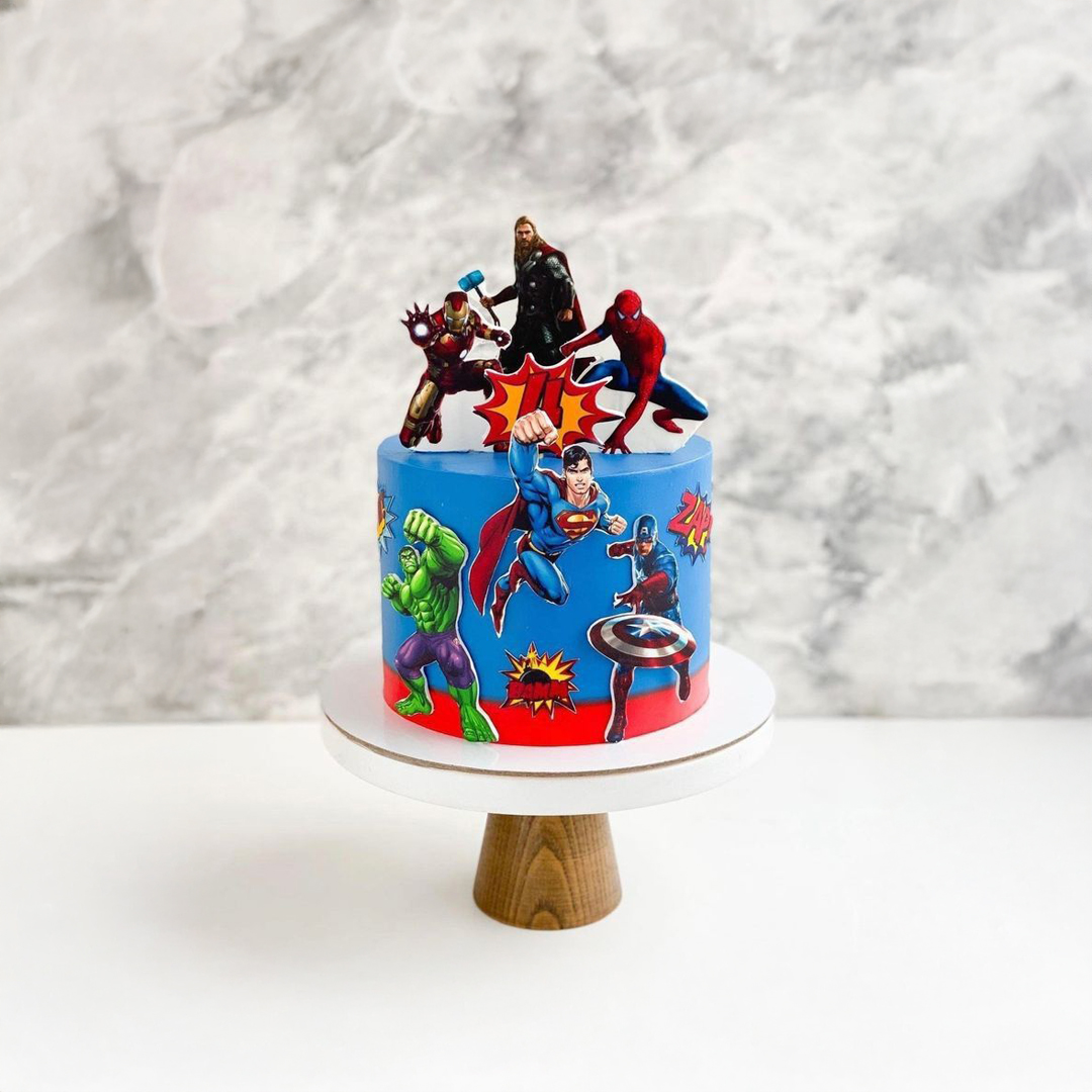 Unleash the power of celebration with our Super Squad Themed Cake, inspired by the legendary Avengers! Perfect for superhero lovers, this 1-tier birthday cake is designed to showcase your favorite heroes in a delicious and stunning form.