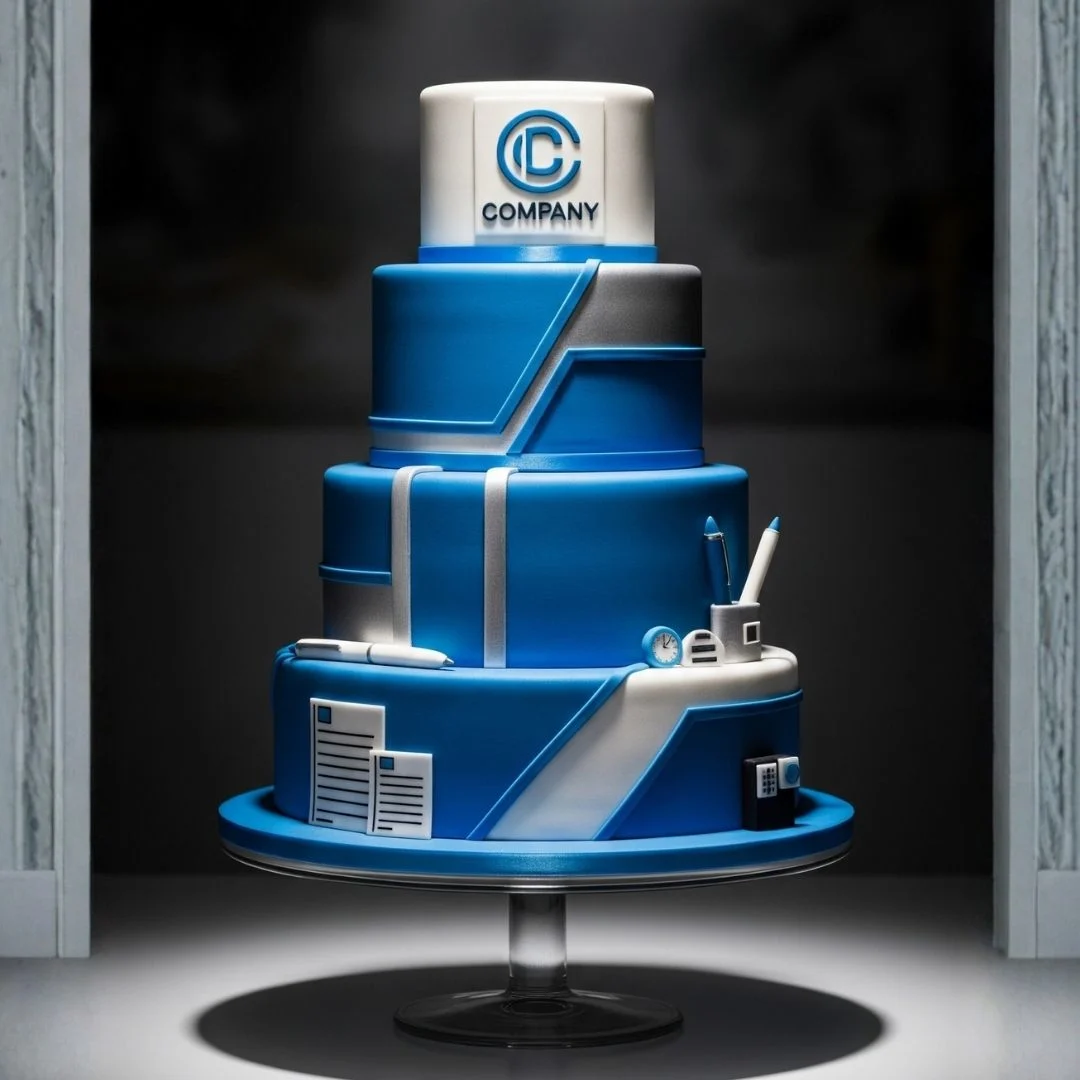 Celebrate success with The Boardroom Blue Cake — a 4-tier fondant showstopper in elegant blue and white tones. Perfect for corporate milestones or grand events, this 100% eggless creation blends sophistication with flavour and can be customised to match your brand or occasion.